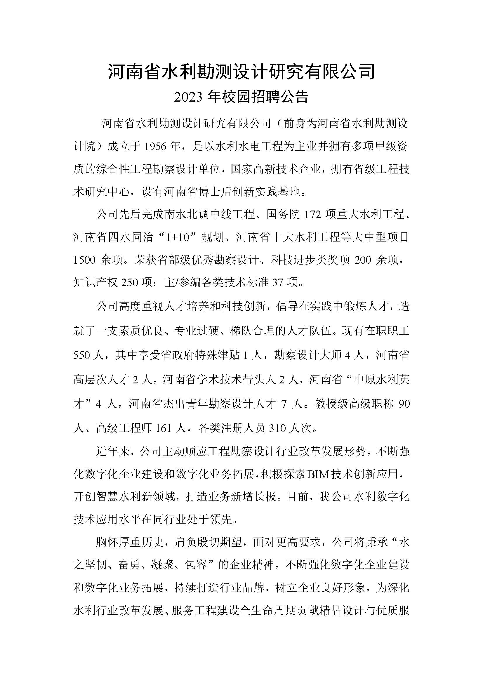 河南省水利勘測設(shè)計研究有限公司2023年校園招聘公告