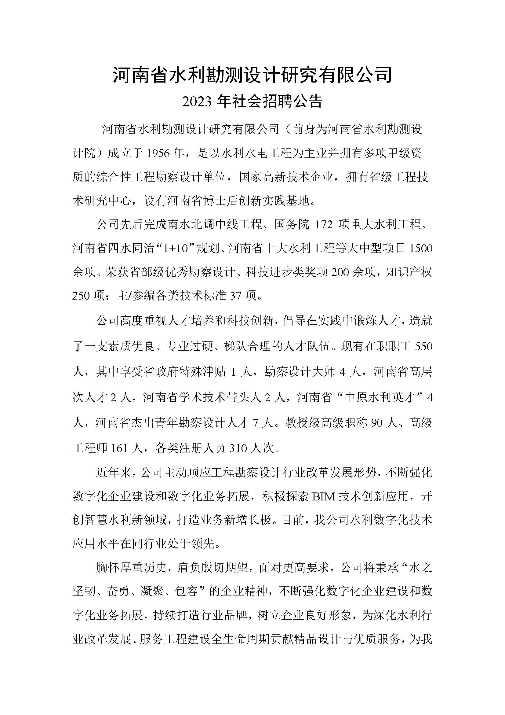附件1:河南省水利勘測設(shè)計(jì)研究有限公司2023年社會招聘計(jì)劃.pdf