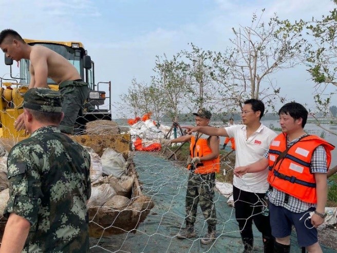 7月19日汛情發(fā)生后,根據(jù)省水利廳防汛工作統(tǒng)一安排和部署,公司第一時間成立由公司黨委書記、董事長翟淵軍牽頭指揮的豫水設計防汛應急工作領導小組,啟動了由前線搶險專家團隊、后方技術(shù)支撐團隊和后勤保障團隊組成的防汛搶險應急響應機制,24小時日夜值守,滾動會商。截止目前,公司黨委委員、總經(jīng)理朱太山帶隊,先后派出26支抗洪搶險專家組共計58人(次),其中共產(chǎn)黨員42人(次),奔赴鄭州、滎陽、新密、登封、新鄉(xiāng)、輝縣、衛(wèi)輝、安陽、鶴壁、濮陽、平頂山、許昌等地參與水利工程應急搶險,為常莊等10余座水庫,衛(wèi)河、共產(chǎn)主義渠等河道堤防,以及南水北調(diào)中線總干渠工程安全提供了科學的技術(shù)支持,在保障人民群眾生命財產(chǎn)安全方面發(fā)揮了至關(guān)重要的作用。