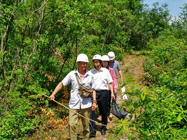 商城縣韓樓水庫是當?shù)鼐珳史鲐氻椖恐?,雖然工程建設規(guī)模較小、地質(zhì)條件復雜、夏季蛇蟲較多,但是勘察現(xiàn)場技術(shù)人員克服諸多苦難,按照計劃穩(wěn)步推進各項現(xiàn)場工作。在勘察院曹建忠的帶領下,審核組一行人員頂著炎炎烈日,沿著崎嶇的山路徒步前往勘察現(xiàn)場,實地檢查作業(yè)情況。