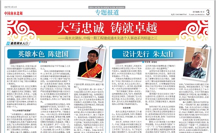 3月1日,《中國(guó)南水北調(diào)》報(bào)及其網(wǎng)頁(yè)版(epaper.nsbd.cn)均刊發(fā)了采訪(fǎng)我公司總經(jīng)理朱總的專(zhuān)題報(bào)道《設(shè)計(jì)先行朱太山》。