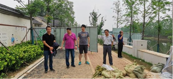 技術副總監(jiān)田耕(圖中左二)現場指導渦河堤頂排水工程施工