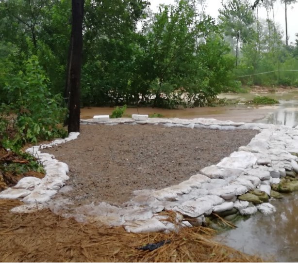 21日上午十點左右,史灌河右岸出現重大險情,新臺子段潘莊險工處堤防上游水面出現巨大漩渦,堤頂嚴重塌陷開裂,堤身通透,堤防透水流量達5立方米每秒以上,繼而又出現了超大管涌,涌水流量達1立方米每秒以上,形勢十分危急,隨時都有潰決的可能,對豐港、大橋、蔣集圩區(qū)內的10.1萬居民構成巨大威脅!汛情就是命令!現場迅速由某集團軍、水利廳、應急廳、信陽市、固始縣組成軍地指揮所,調集專家組緊急馳援!經緊急商討,及時制定了現場處理方案,至晚上十時險情基本得到控制。
