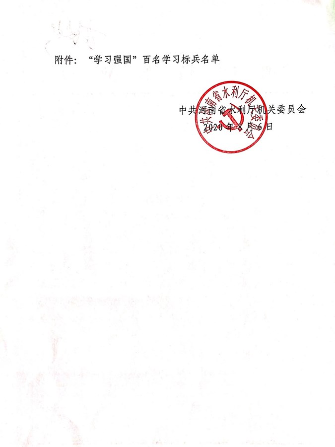 2020年8月6日,廳直機關(guān)黨委下發(fā)了“關(guān)于表彰‘學習強國’百名學習標兵的通知,公司設(shè)計二院黨支部馮濤同志被授予“學習強國”百名學習標兵榮譽稱號。