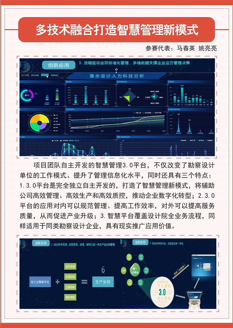 “滿眼生機(jī)轉(zhuǎn)化鈞,天工人巧日爭(zhēng)新。”伴隨著新年伊始第一場(chǎng)瑞雪,2022年1月6日下午,豫水設(shè)計(jì)集團(tuán)第二屆創(chuàng)新大賽決賽正式拉開(kāi)帷幕。本屆大賽共收到參賽作品25件,其中技術(shù)創(chuàng)新類15件、科研創(chuàng)新類7件、管理創(chuàng)新類2件、其他創(chuàng)新類1件。2021年12月3日公司舉行了初賽,6件技術(shù)創(chuàng)新類、4件科研創(chuàng)新類、1件管理創(chuàng)新類共11件參賽產(chǎn)品入圍決賽。