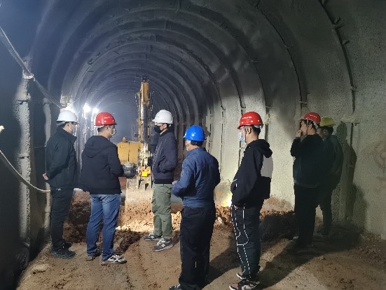 公司設計代表(左三)與參建各方現(xiàn)場會商隧洞內襯結構方案優(yōu)化