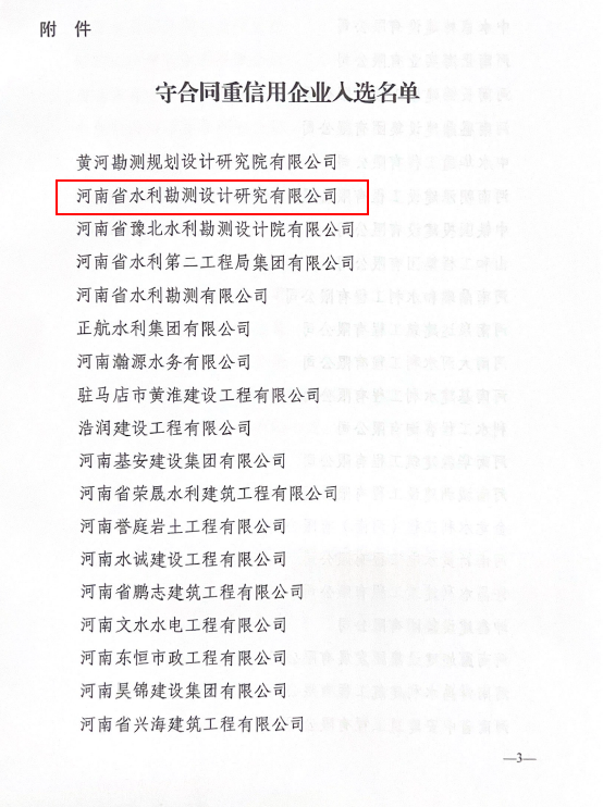 近日,河南省水利學(xué)會公布守合同重信用企業(yè)入選名單,豫水設(shè)計公司被評為“守合同重信用企業(yè)”。