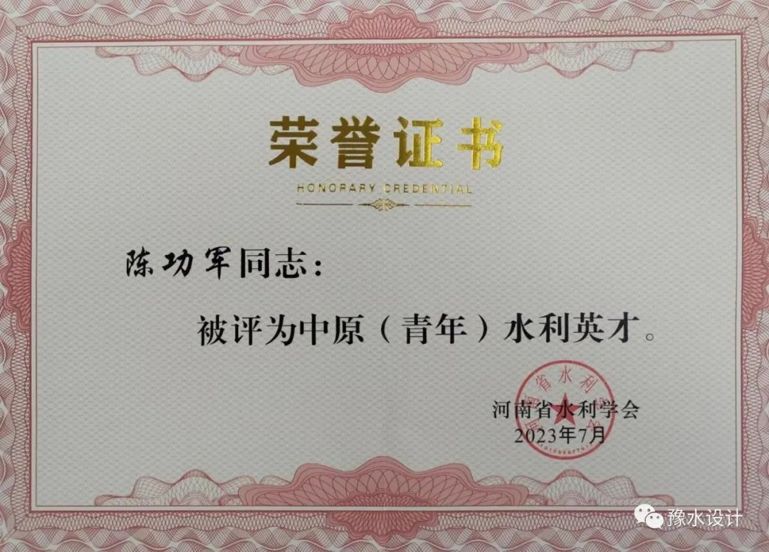 在河南省水利學會組織的2023年度中原(青年)水利英才、水利行業(yè)優(yōu)秀科技人才評選活動中,公司數(shù)字工程院副院長陳功軍獲2023年度中原(青年)水利英才,馬山玉獲2023年度水利行業(yè)優(yōu)秀科技人才。在此對兩位同志表示祝賀。