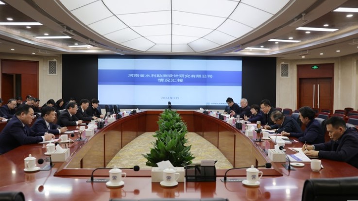 周貴恒一行參觀了豫水設(shè)計(jì)公司院史陳列廳,聽取了豫水設(shè)計(jì)公司整體工作開展情況匯報(bào),并與公司領(lǐng)導(dǎo)班子、各院部主要負(fù)責(zé)同志進(jìn)行座談。