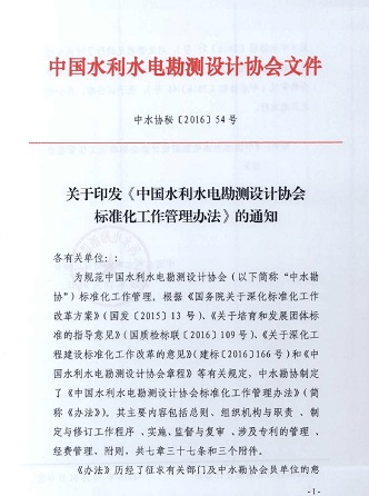 關于印發(fā)《中國水利水電勘測設計協會標準化工作管理辦法》的通知