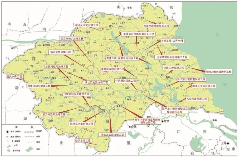 淮河流域防洪除澇標(biāo)準(zhǔn)顯著提高,淮河干流上游防洪標(biāo)準(zhǔn)超10年一遇;中游主要防洪保護(hù)區(qū)、重要城市和下游洪澤湖大堤防洪標(biāo)準(zhǔn)已達(dá)到100年一遇;重要支流及中小河流的防洪標(biāo)準(zhǔn)已基本提高到10—20年一遇以上;沂沭泗河中下游重要防洪保護(hù)區(qū)的總體防洪標(biāo)準(zhǔn)基本上達(dá)到50年一遇;在行蓄洪區(qū)充分運(yùn)用的情況下,可防御新中國(guó)成立以來(lái)發(fā)生的流域性最大洪水。