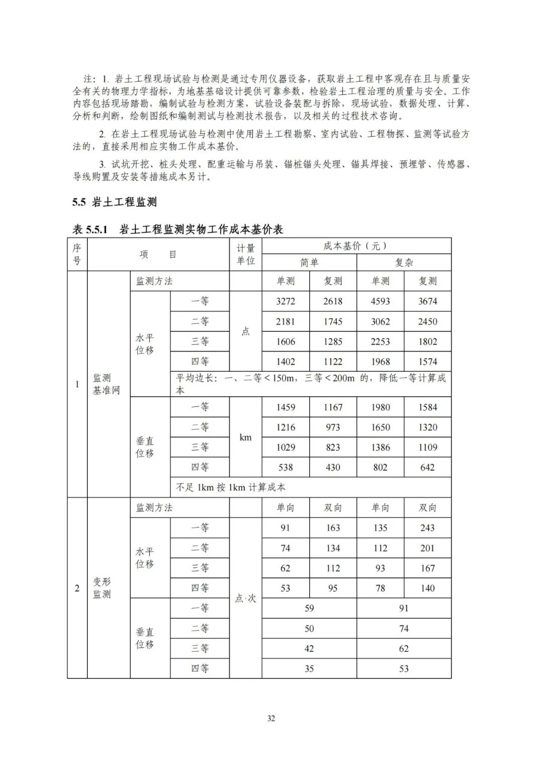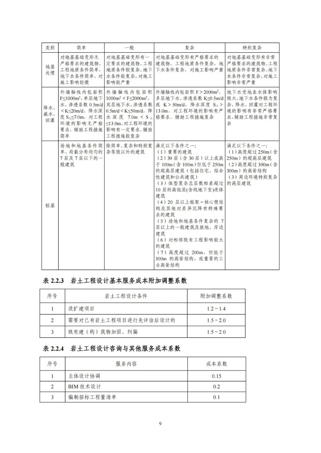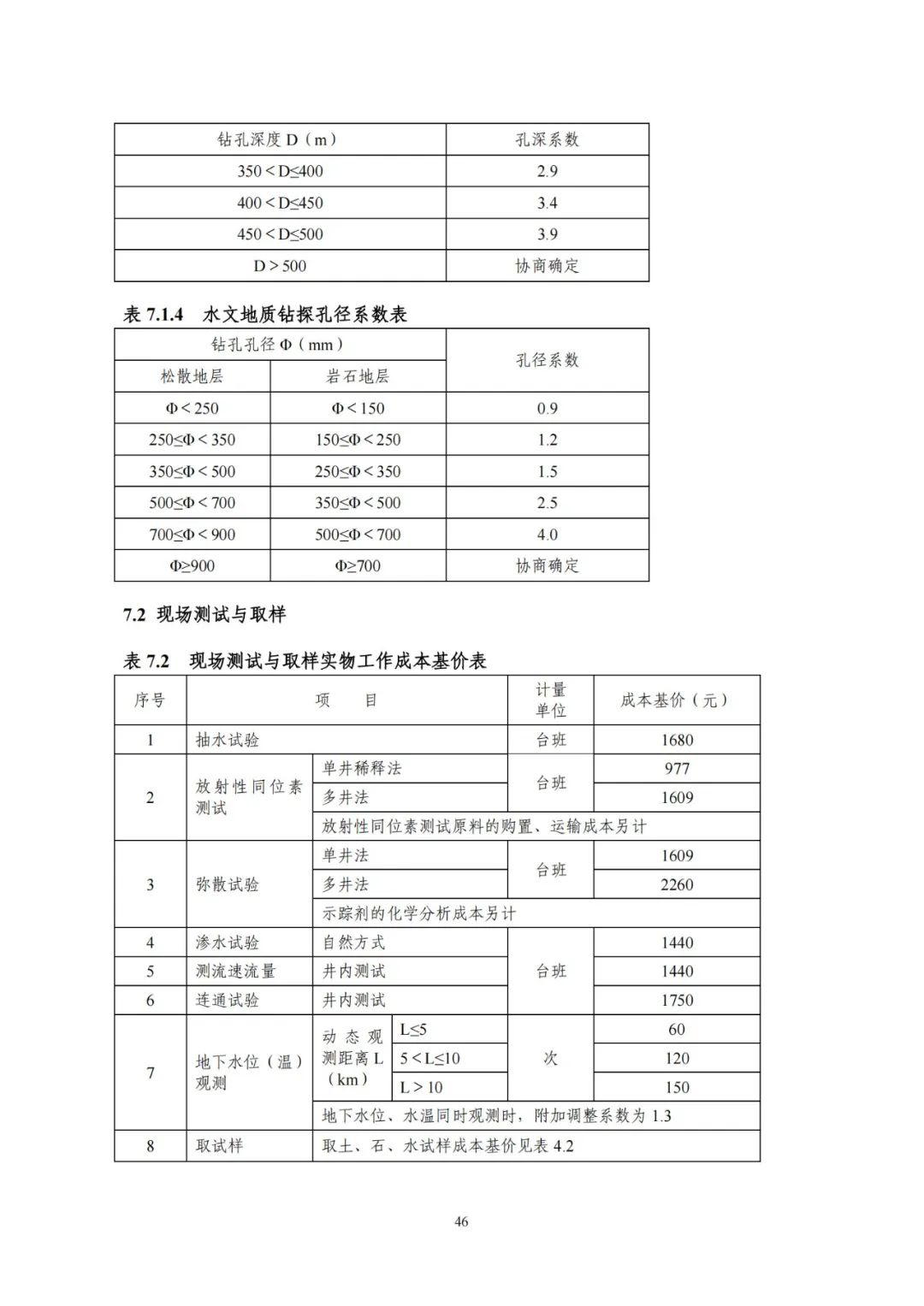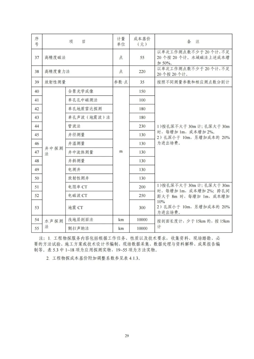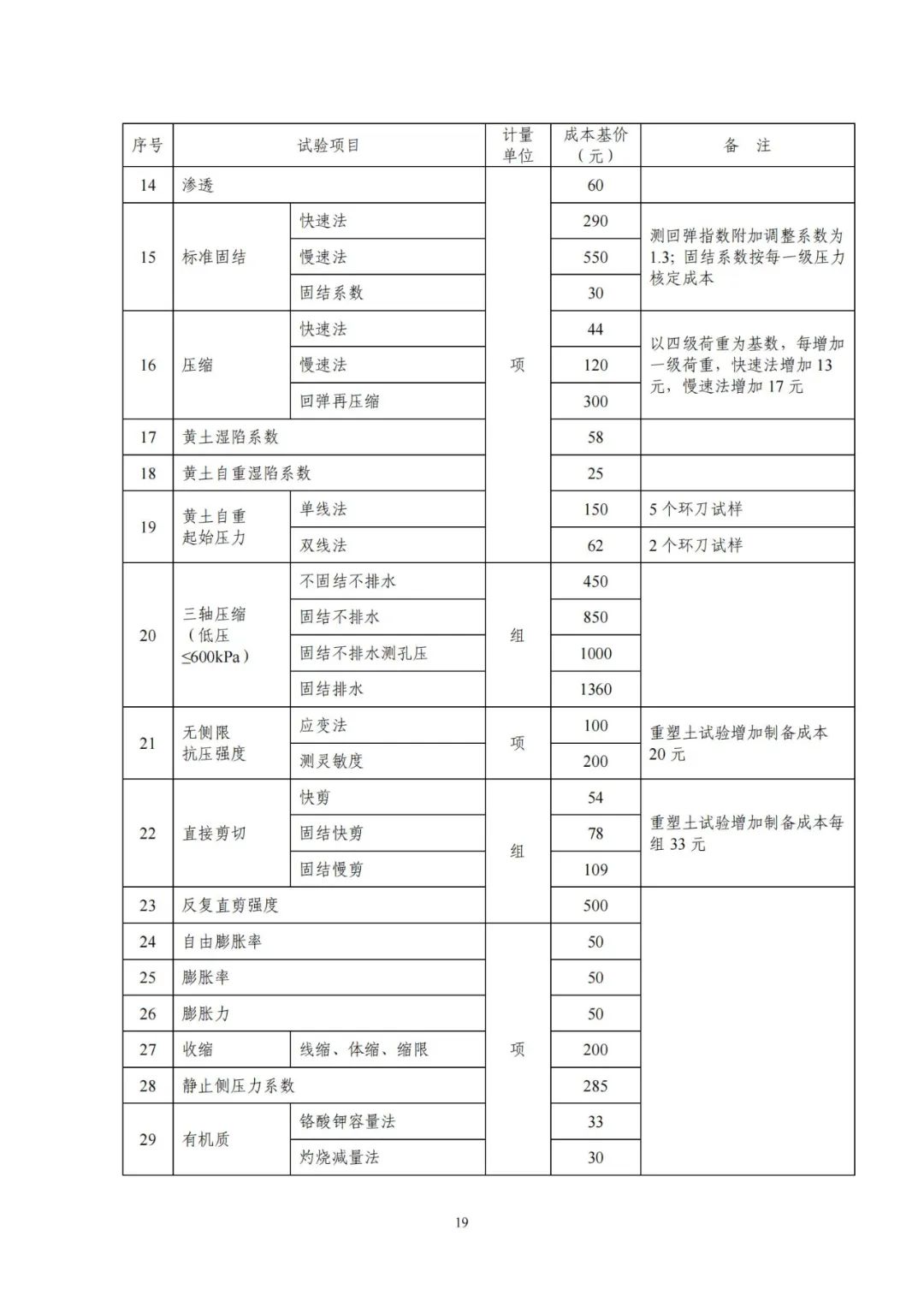 《要素信息》分為八章,相關成本測算分為工程費法(其包含巖土工程勘察、巖土工程勘察咨詢與監(jiān)理、巖土工程設計和專業(yè)工程咨詢)、實物工作量法(其包含工程地質測繪與遙感地質解譯、巖土工程勘探與取樣、巖土工程試驗/檢測與監(jiān)測、工程測量、水文地質勘察)及人工日法三類。除傳統的巖土工程試驗、測試和工程測量項目外,實物工作成本包括了土的易溶鹽及導熱系數等室內試驗、多功能數字式孔壓靜力觸探試驗、溫度測量等工程物探、海洋和內陸水域測量、無人機航空攝影測量、地面三維激光掃描測量、規(guī)劃測量等以新技術方法為主的專業(yè)技術服務項目。