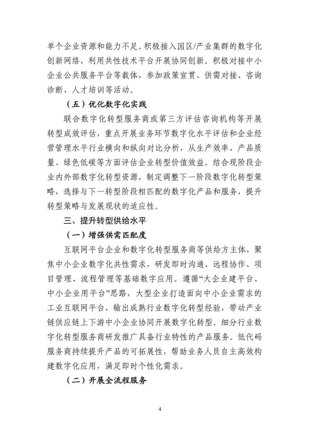 《指南》第三部分“提升轉(zhuǎn)型供給水平”主要面向中小企業(yè)數(shù)字化轉(zhuǎn)型服務(wù)供給方,包括增強(qiáng)供需匹配度、開(kāi)展全流程服務(wù)、研制輕量化應(yīng)用和深化生態(tài)級(jí)協(xié)作等四個(gè)方面內(nèi)容,旨在引導(dǎo)供給方聚焦中小企業(yè)特征和實(shí)際需求,提升面向中小企業(yè)的數(shù)字化轉(zhuǎn)型產(chǎn)品和服務(wù)水平,發(fā)揮有效市場(chǎng)作用,助力中小企業(yè)深入開(kāi)展轉(zhuǎn)型。